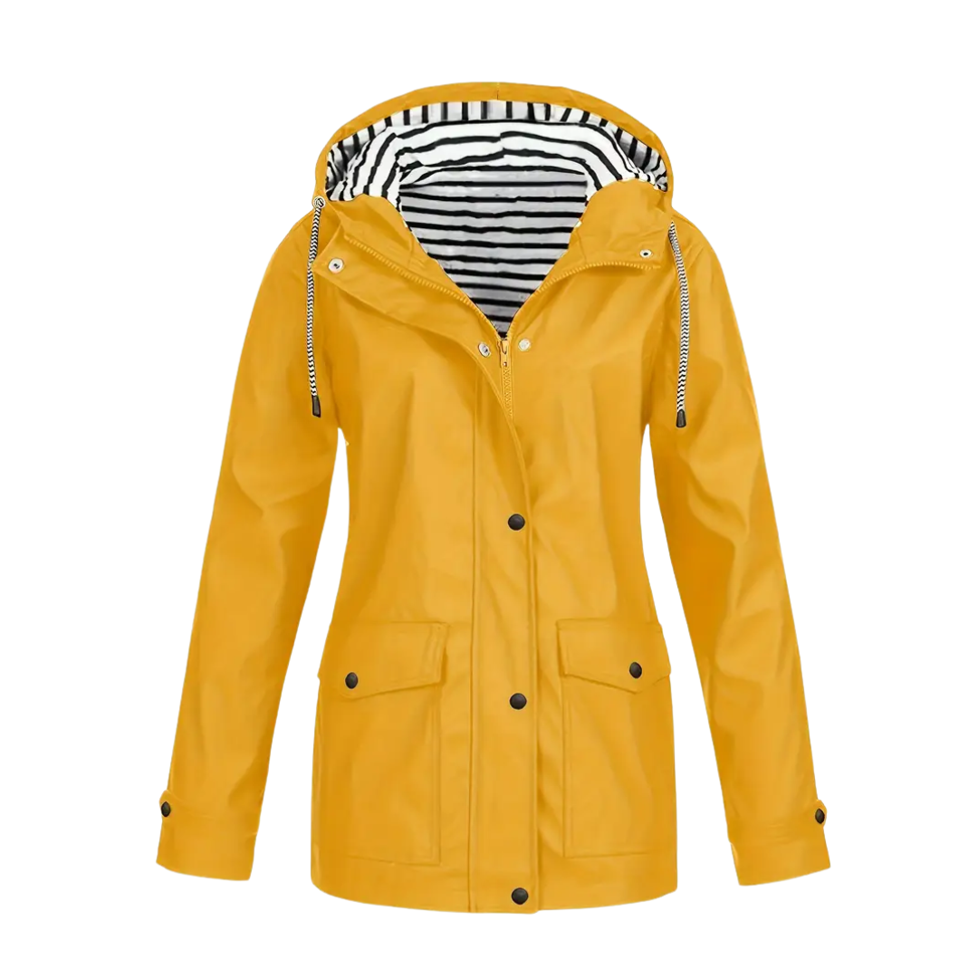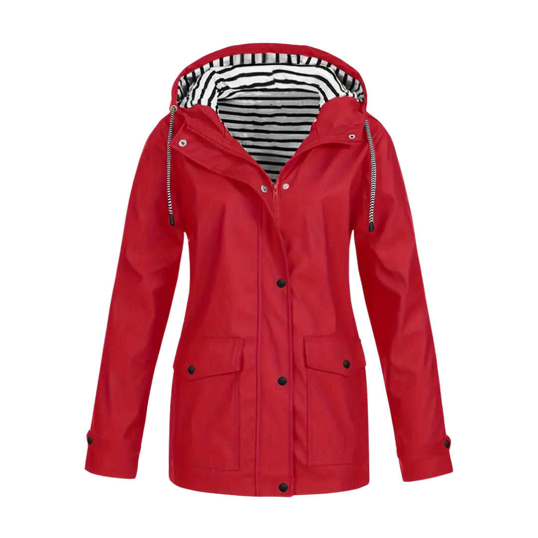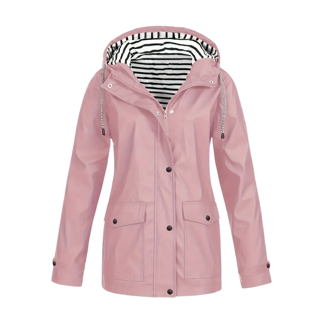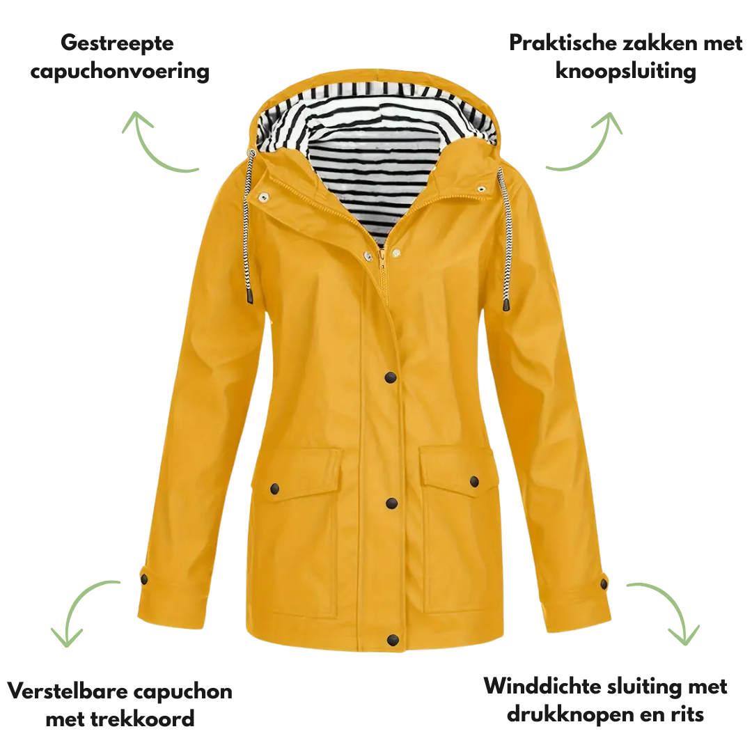 Ga droog en stijlvol de deur uit met deze rits-hoodie windbreaker. De jas combineert een soepel vallende, waterafstotende polyestershell met een gestreepte voering in de capuchon en praktische klepzakken, perfect voor frisse herfstdagen en winderige winterwandelingen.