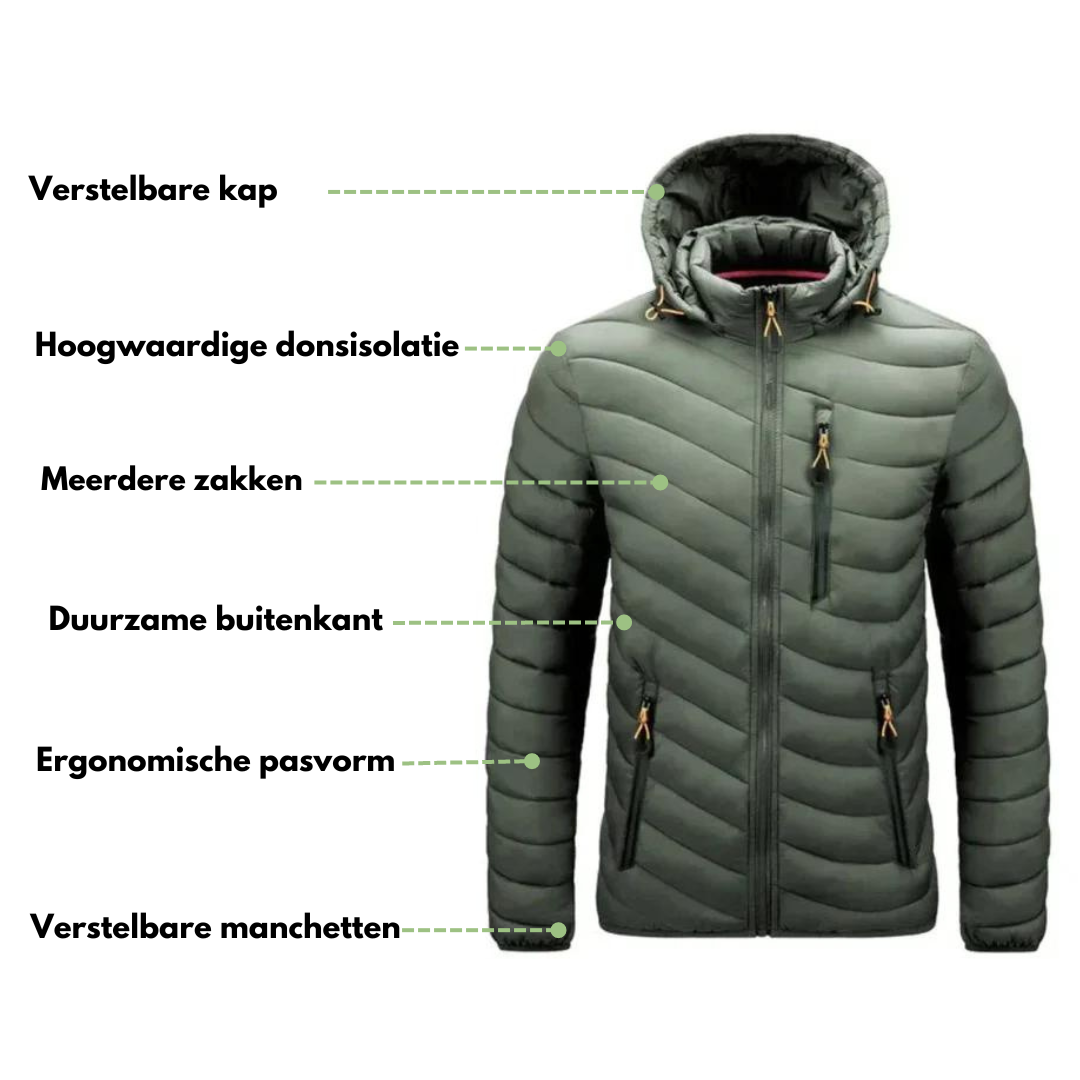 De Down Jacket - Waterafstotend - Autumn combineert stijl en functionaliteit, perfect voor elk herfst- en winteravontuur. Met dons van hoge kwaliteit en een waterafstotend ontwerp blijf je warm en droog, wat voor weer het ook is.