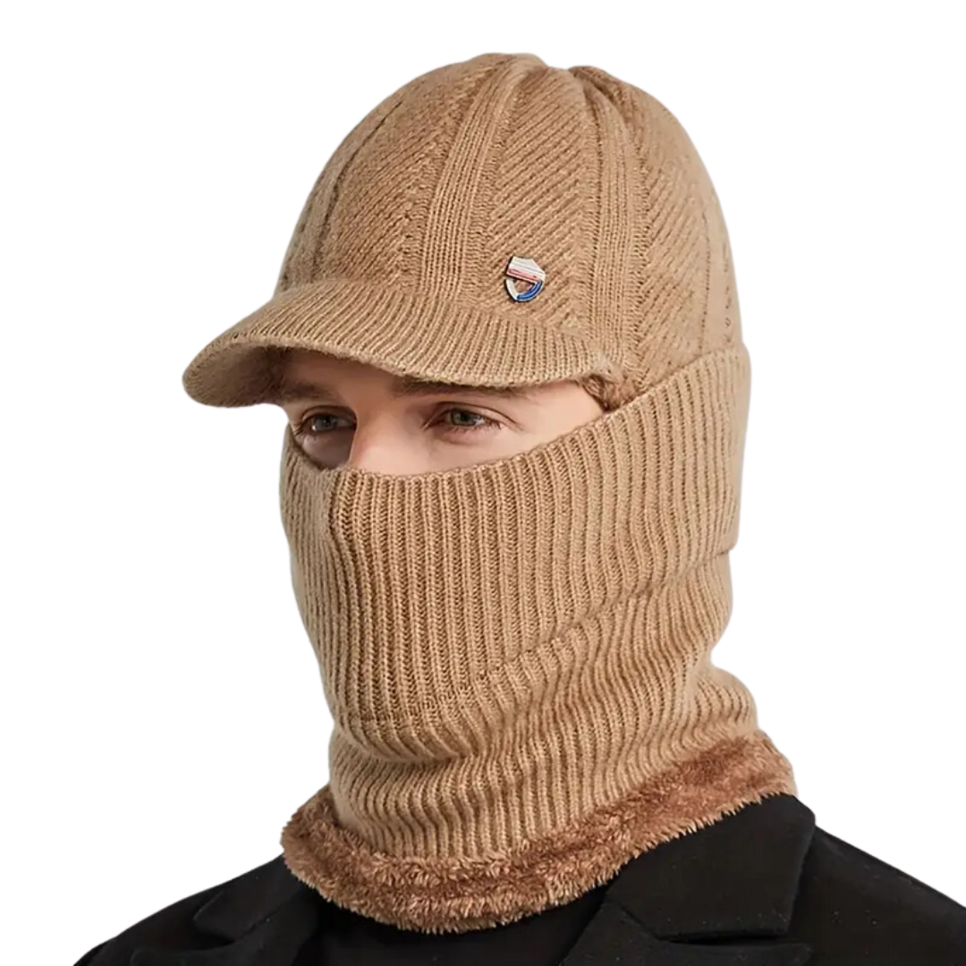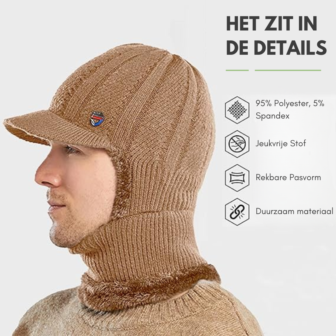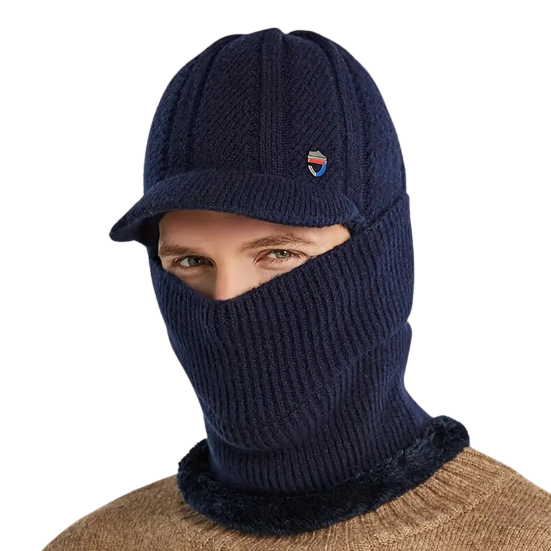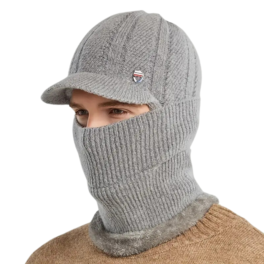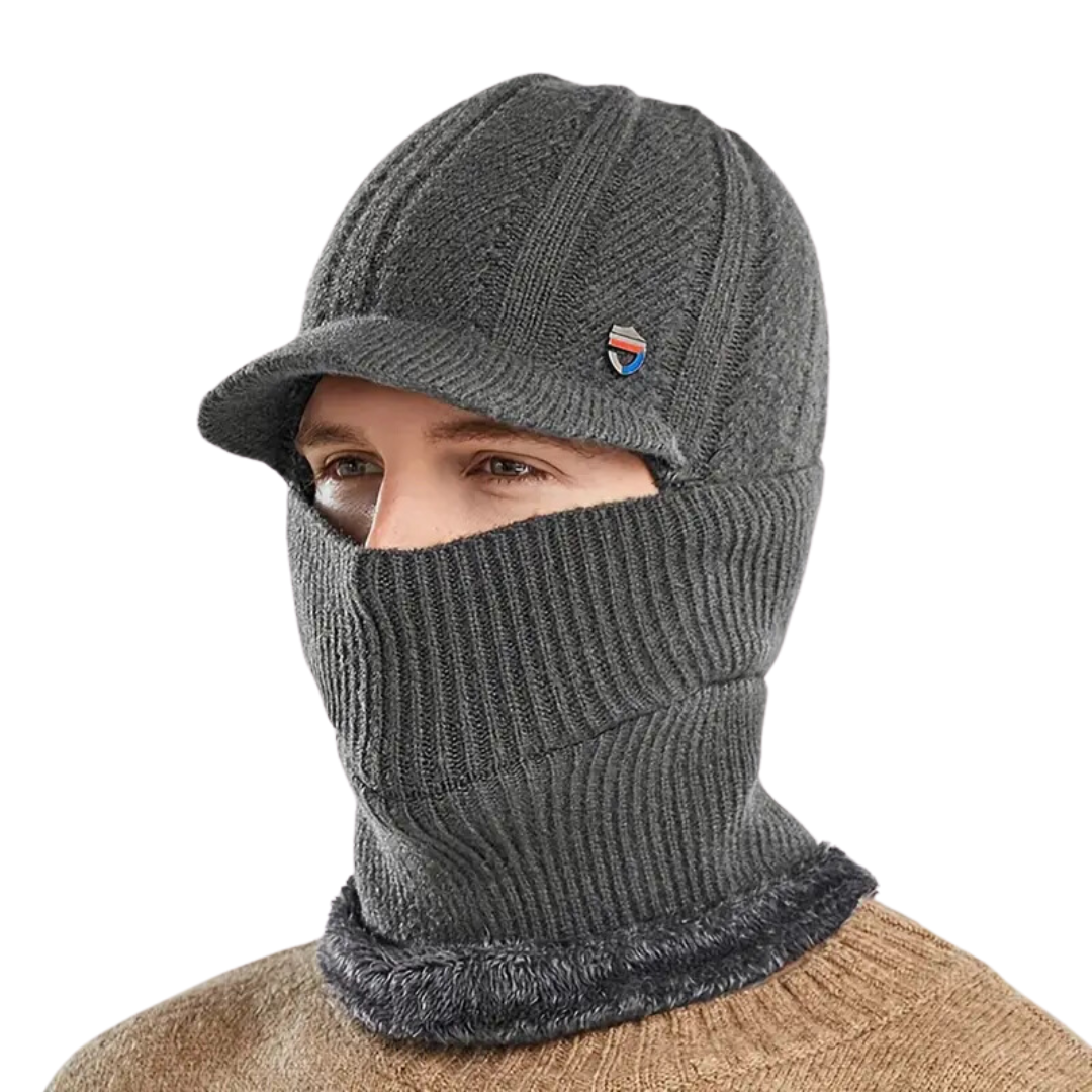Bescherm jezelf tegen de kou met deze multifunctionele gebreide muts. Gecombineerd met een sjaal, masker en oorbescherming biedt deze muts volledige bescherming en comfort tijdens koude winterdagen.