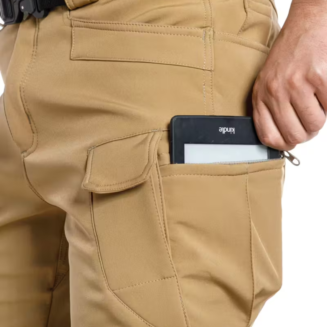 Ga voor warmte, functionaliteit en duurzaamheid met deze gevoerde heren cargo broek. De zachte fleece binnenkant houdt je comfortabel in de kou, terwijl het stevige softshell materiaal beschermt tegen wind en slijtage.