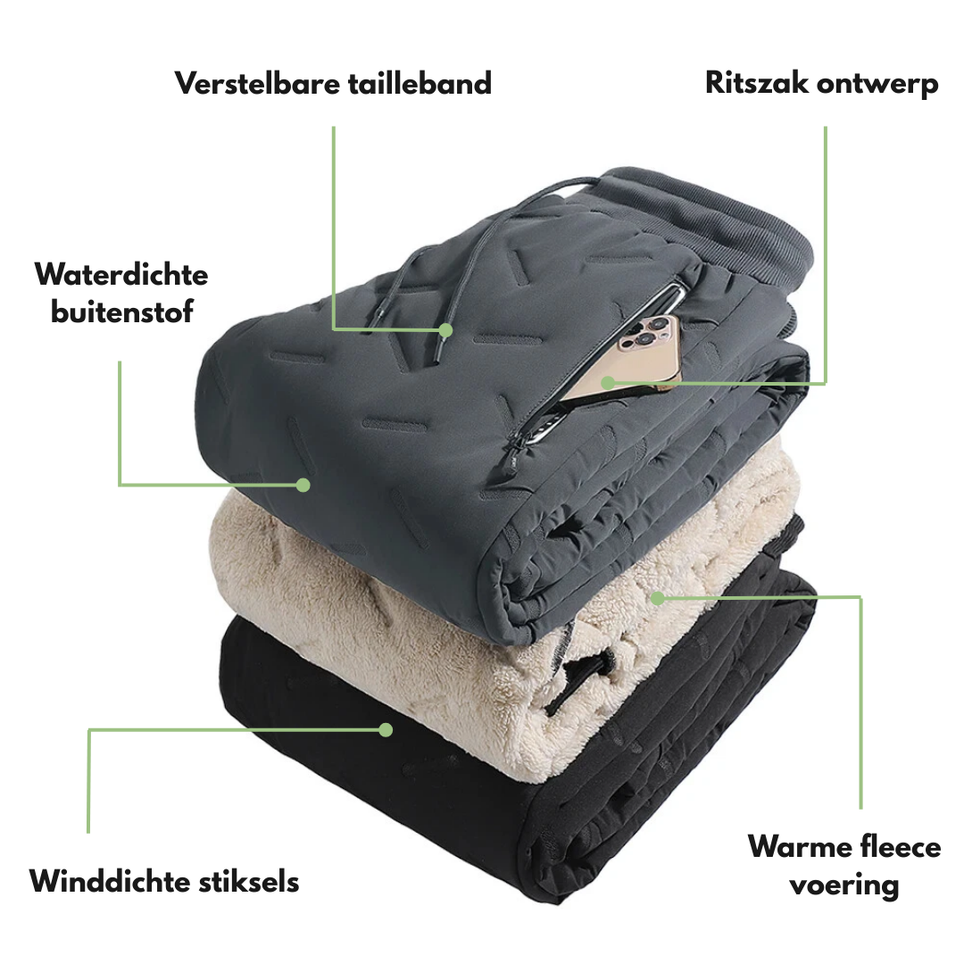 Blijf warm, beschermd en stijlvol tijdens koude dagen met deze gevoerde thermo joggingbroek. Dankzij de waterdichte buitenlaag, dikke fleece voering en casual pasvorm is dit de ideale broek voor dagelijks gebruik, sport of buitenactiviteiten in de winter.