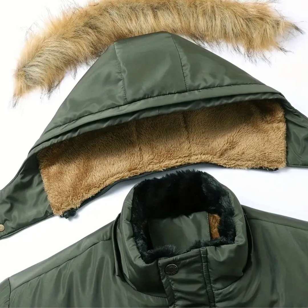 Blijf comfortabel in ijskoud weer met deze klassieke winterparka. De jas combineert een duurzame geweven buitenstof met een dik, zacht pluche binnenwerk, terwijl de capuchon met kunstbonten rand extra bescherming geeft tegen wind en sneeuw. Perfect voor dagelijks gebruik, woon-werk en weekendavonturen.