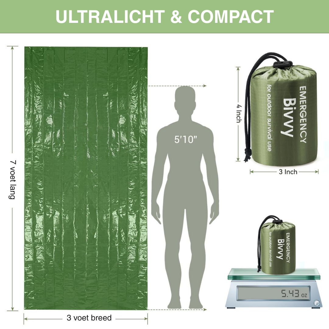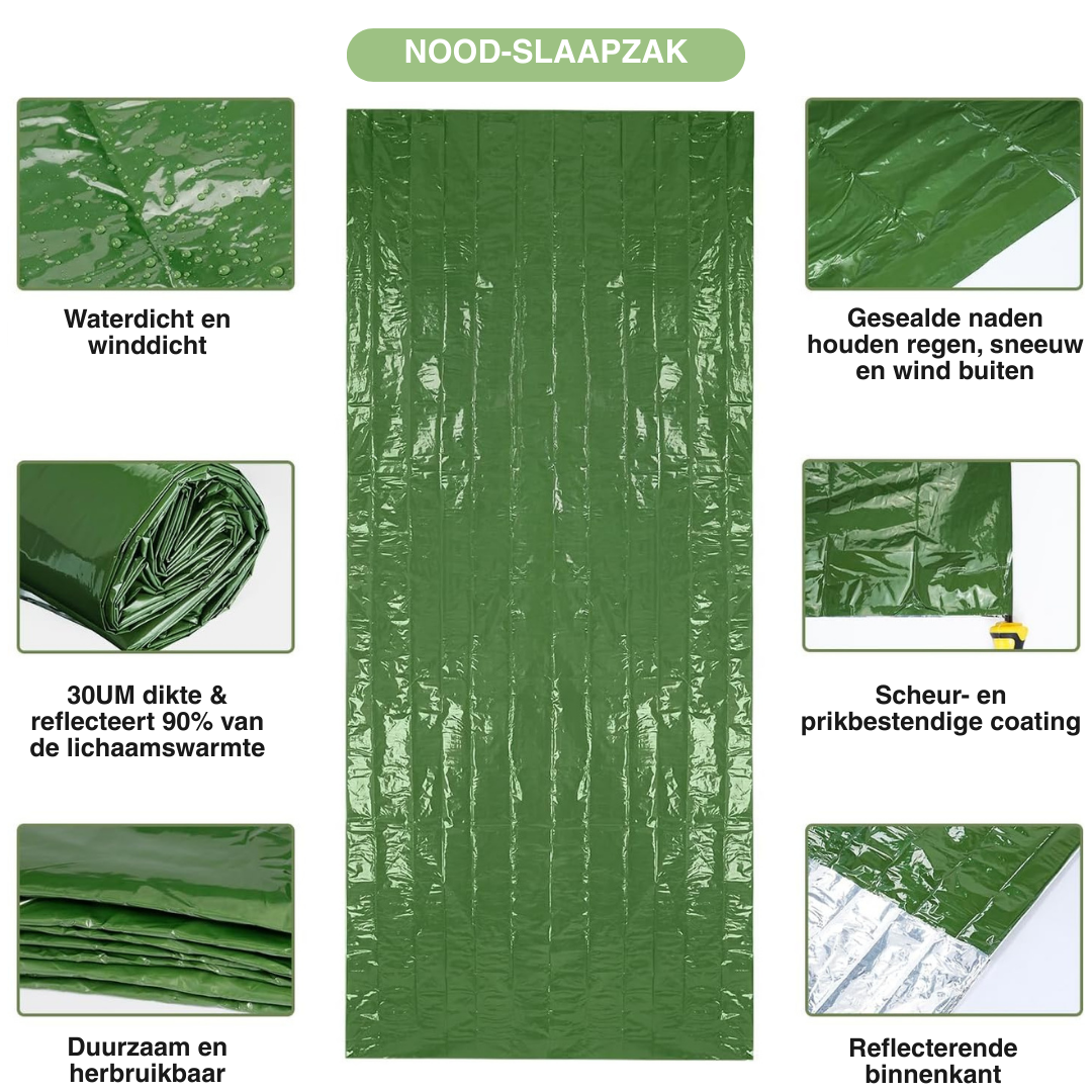 De nood slaapzak is een onmisbaar hulpmiddel in kritieke situaties. Of het nu gaat om een ramp, auto-ongeluk of onverwachte outdoor omstandigheden, deze slaapzak biedt directe bescherming.