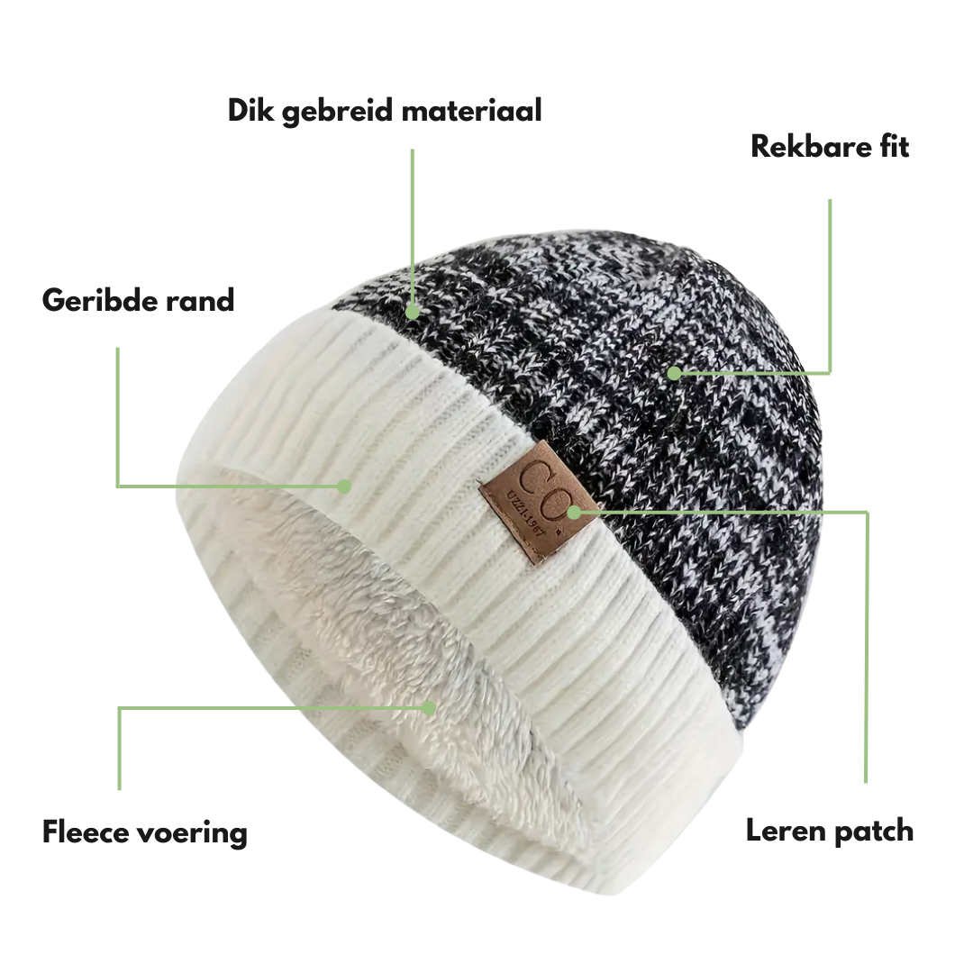 Blijf comfortabel in koud weer met deze sportieve gebreide muts. De binnenzijde is dik fleece-gevoerd voor warme oren en een zachte, pluizige touch, terwijl de ribstructuur en het duurzame stikwerk zorgen voor een stevige pasvorm die lang mooi blijft.