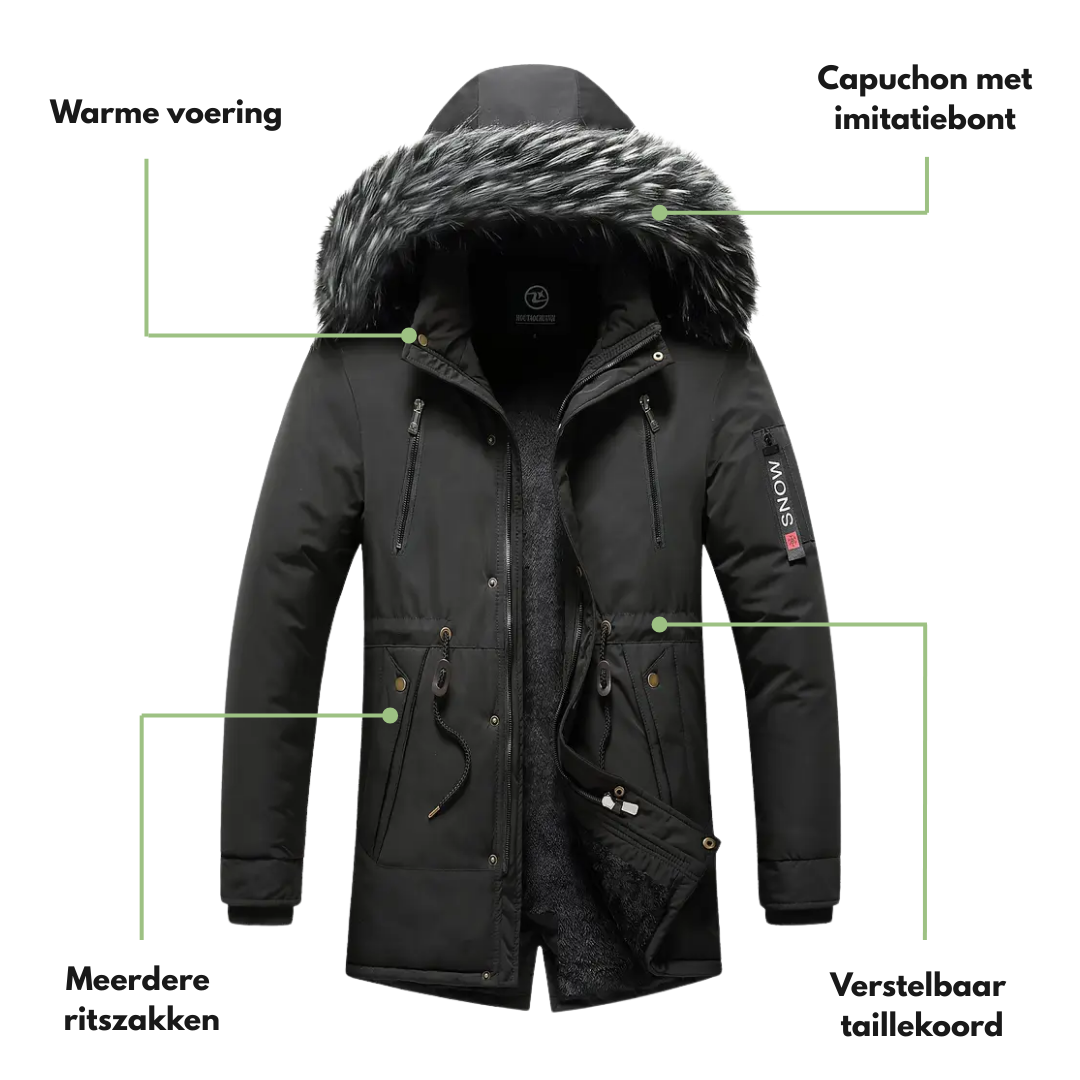 Blijf warm en georganiseerd met deze casual winterjas voor heren. De geweven stof met polyestervulling houdt de kou buiten, terwijl de verstelbare capuchon met imitatiebont extra bescherming biedt tegen wind en sneeuw. Ideaal voor dagelijks gebruik, woon-werkverkeer en winterse stadswandelingen.