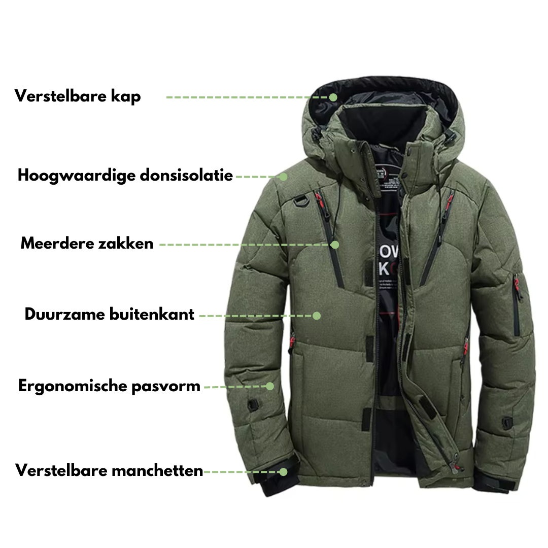 Blijf deze winter warm en droog met onze Winter Down Jacket. Deze lichtgewicht en ademende jas biedt uitstekende isolatie, bescherming tegen wind en water, en een stijlvolle look.